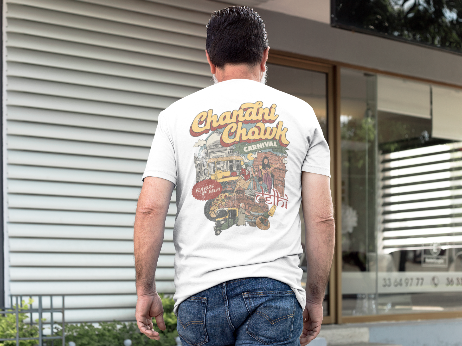 The first release is all about India, and more specifically Delhi, a city that’s loud, intense, chaotic, and unforgettable. On the back of the shirt is a hand-drawn design inspired by a vintage street food carnival poster.