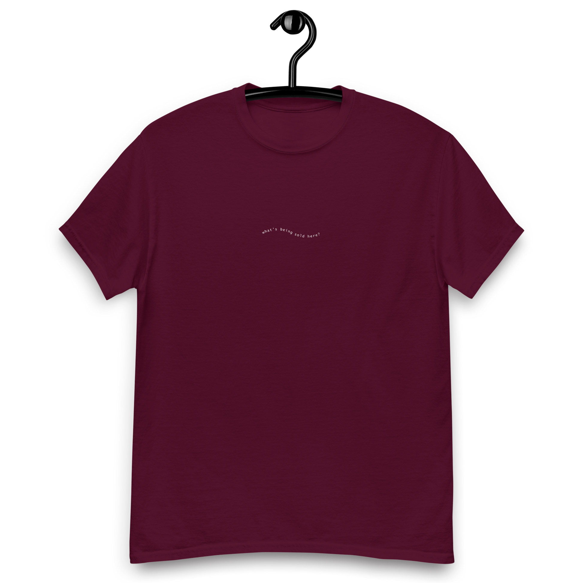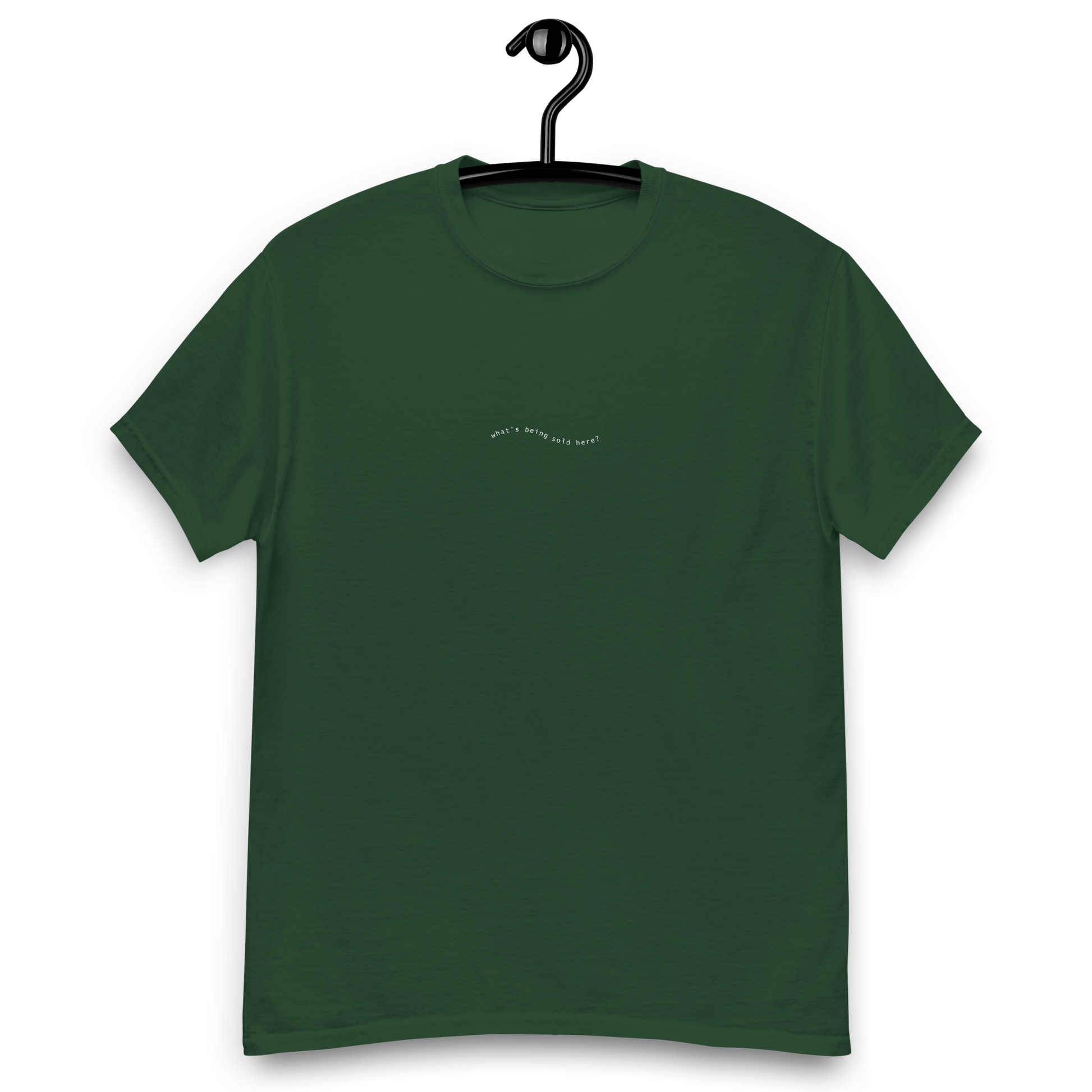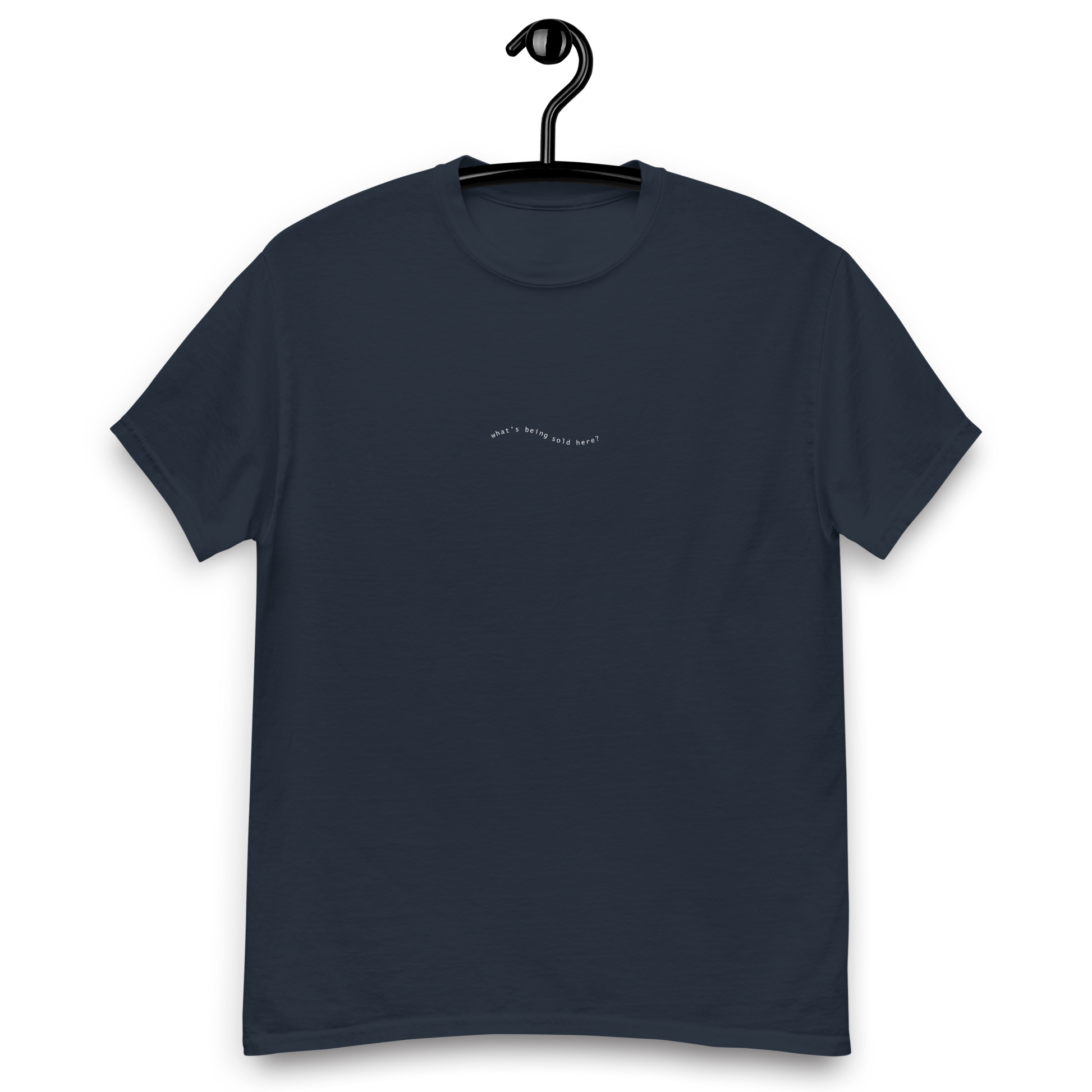 On the front is a minimalist text featuring the phrase that’s become a signature in my videos: “what's being sold here?” A nod to the curiosity that’s driven this journey.
